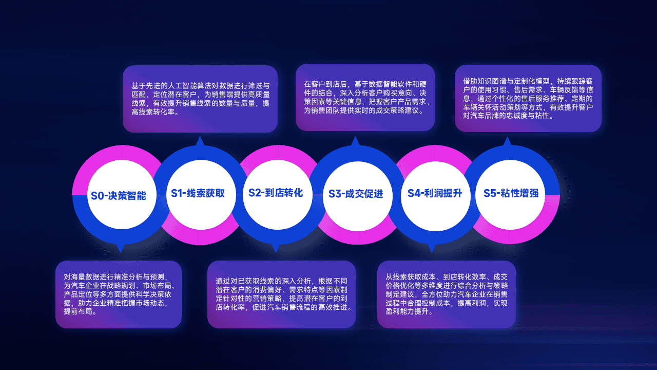 通过拓宽潜在客户来源、、、优化线索分配并提高到店转化率,,,,以增强销售效率。。。同时,,,利用线索数据不断优化分析模型,,有效提升转化率,,,,扩大营销影响力。。